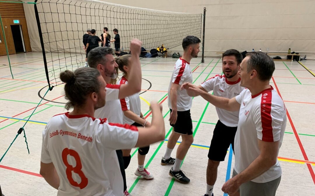 Nach vier Sätzen musste sich das Schloß-Volleyballteam im Stadtmeisterschaftsspiel gegen die Mannschaft der Realschule Hohenstein aus Wuppertal nach mutigem Widerstand geschlagen geben. Der Gegner, gespickt mit Volleyballvereinsspielern und Spielerinnen, gab zwar von Beginn die Marschrichtung vor und gewann die ersten beiden Sätze souverän, jedoch widersetzte sich unser Schloßteam einer drohenden Niederlage mit immensen Kampf- und Teamgeist und gewann daraufhin den dritten Satz mit 25:22.