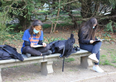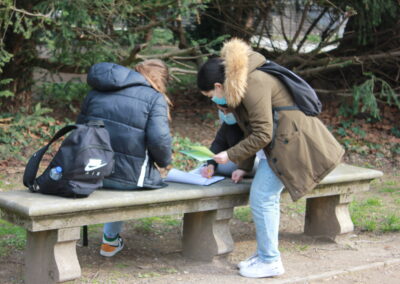 Nach der langen Zeit des Distanzunterrichts und dem Ausprobieren vieler digitaler Tools konnten vor den Osterferien im Biologieunterricht endlich wieder Exkursionen stattfinden. Ökologie ist Thema in den Jahrgangsstufen 7, 8 und in der Q1 und da muss die Nähe zum Schlosspark mit der Vielzahl von Frühblühern einfach genutzt werden. Und durch den Wechselunterricht mit geteilten Gruppen war es eine doppelte Freude für die Lehrerin. Der Duft von Waldmeister und Veilchen und der Ruf des Grünspechts sind im Original soooooo viel besser.