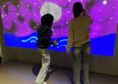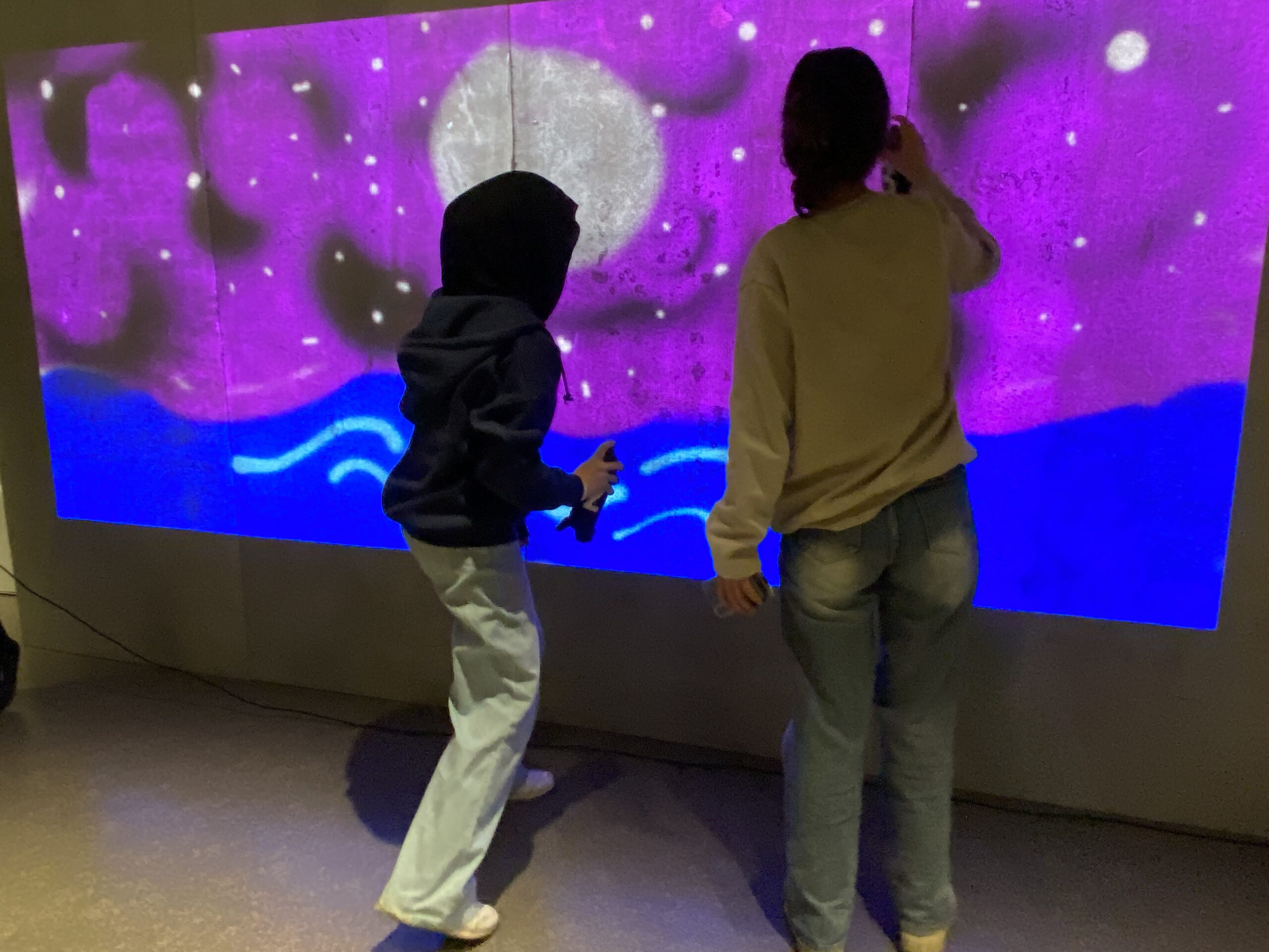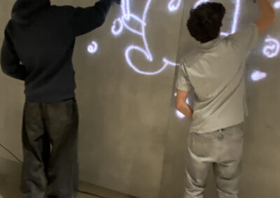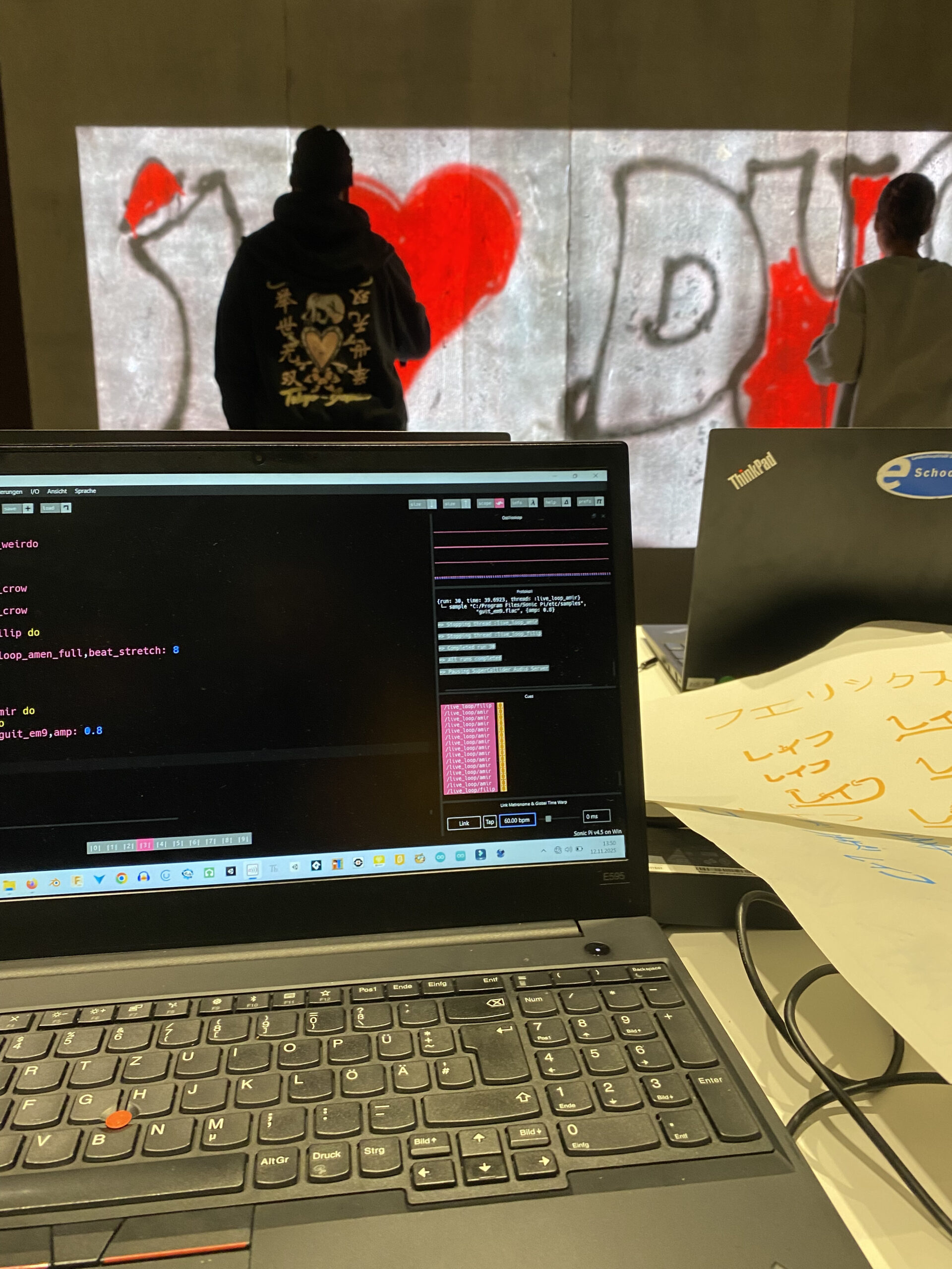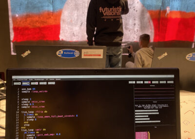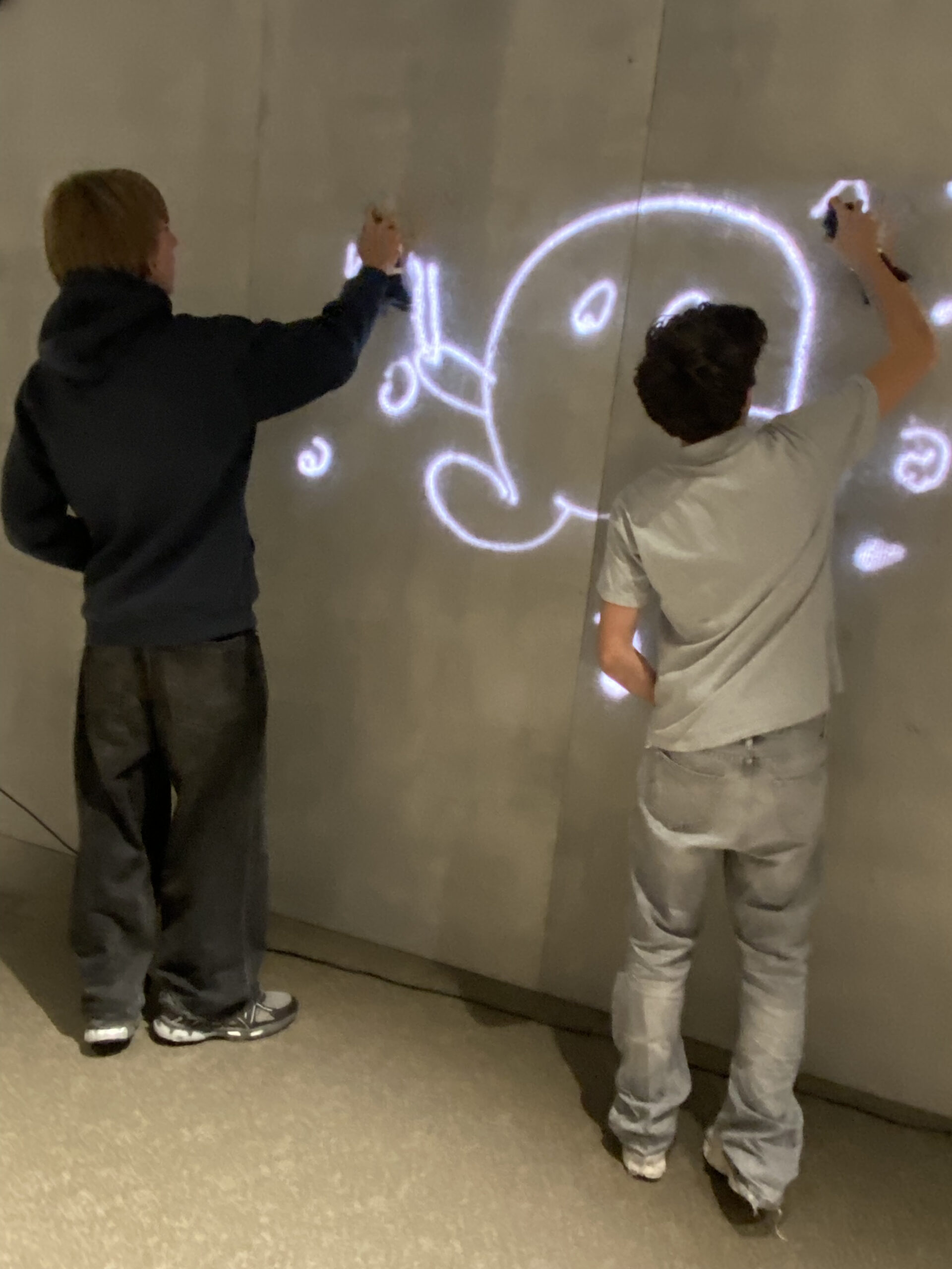 Die beiden anderen Kurse waren neu oder etwas überarbeitet im Programm. So trafen sich 21 Jugendliche in der Zentralen Stadtbibliothek im KAP1 an der digitalen Graffiti-Wand und hatten die Gelegenheit eigene Tags und dann ein ganzes Graffiti zu entwickeln, für welches schließlich mithilfe von Sonic Pi ein passendes Audio erstellt wurde.