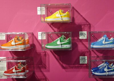Die Ausstellung zeigte uns, dass Sneaker nicht nur Sportschuhe, sondern auch Sammlerstücke sind. Besonders beeindruckend war der Nike Air Jordan 1 von 1985. Dieser Schuh, entworfen von Tinker Hatfield, zeigte uns, wie Sport und Mode zusammengehören. Wir erfuhren, dass Michael Jordan damals einen Vertrag mit Nike hatte und diese ihm anboten, Schuhe nach seinen Bedürfnissen zu formen.