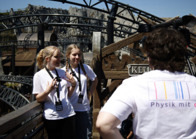 Auf Einladung des Phantasialands konnten die Schülerinnen und Schüler unseres Physik-Videoprojekts „Physik mit c“ ihr diesjähriges Sommerspecial im Phantasialand drehen. Welche Beschleunigungskräfte wirken bei der „Black Mamba“? Wie stark ruckelt es auf der „Colorado Adventure“? Und natürlich: Wie fühlt sich der freie Fall im „Mystery Tower“ an? Solchen Fragestellungen ging das Team von „Physik mit c“ auf die Spur. Gleichzeitig war es der letzte Drehtermin für unsere Schülerinnen aus der aktuellen Q2, die mit dem Abitur unser Gymnasium verlassen. Wir bedanken uns von Herzen bei dem Moderatorenduo -Rebecca & Rada-, bei den Technikerinnen -Elif, Oumaima & Caroline- und bei dem Projektfotografen -Reza- für ihr großartiges Engagement. Schön, dass ihr dabei wart.
