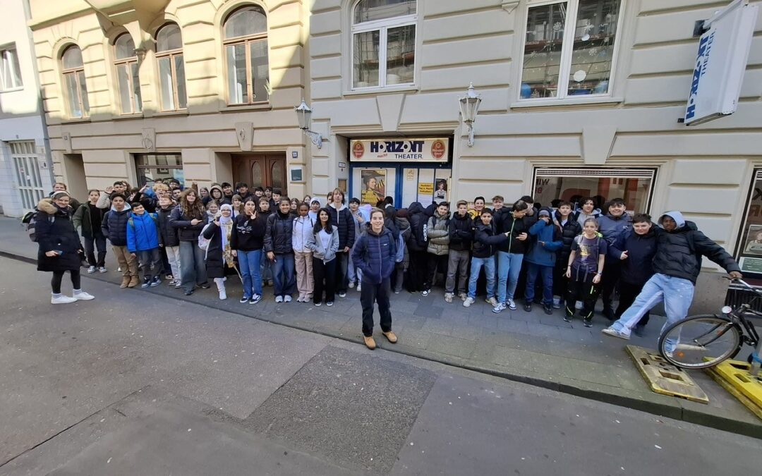 Am Dienstag (18.3.) starteten ca. 80 SchülerInnen mit ihren Lehrerkräften an der neuen Schule, um mit dem Zug den ,,Besuch der alten Dame“ im Horizont-Theater in Köln zu besuchen. Die tragische Komödie von Dürrenmatt wird aktuell im Unterricht thematisiert.